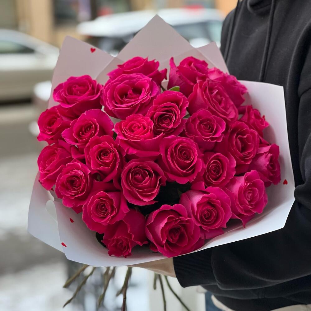 роза ароматная пинкфлоид – 25 шт.упаковка пленка с сердцами – 2 шт.Лента атласная – 1 шт.
