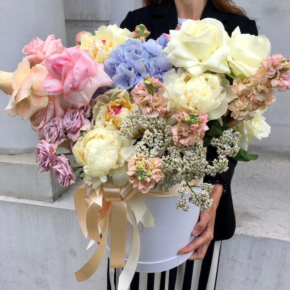 "В твоих глазах": нежная шляпная коробка с французскими розами