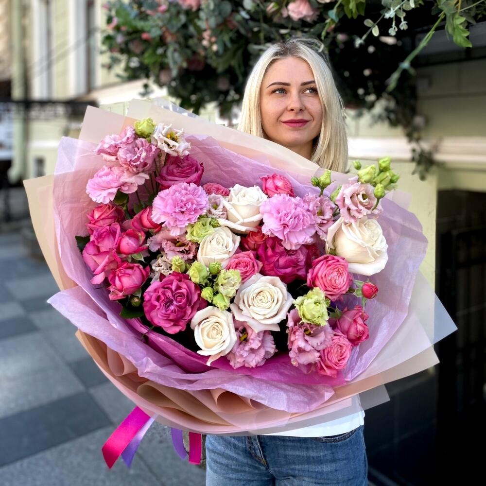 Категорий: Гвоздики, Кустовые розы, Лизиантусы, Пионовидные розы, Розы
